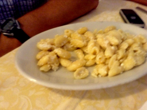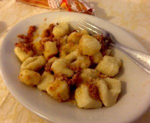 A few years back my brother Angelo discovered the Albergo Alle Alpi (hotel) in Frisanco. While the hotel accommodations are adequate, the gnocchi is exceptional – exactly like my Grandmother’s. Each time we stay, the owners always remember us from a particular visit from my bother Dave. For his first plate he ordered gnocchi al ragu (with meat sauce). For his second plate again he ordered gnocchi al ragu. For his dessert – you guessed it – a third plate of gnocchi al ragu. This is what happens when Dad isn’t around to ration.